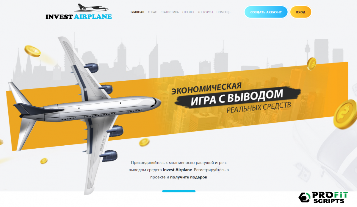 экономическая онлайн игра с выводом реальных средств. Суть игры заключается в покупке самолетов и развития авиапарка, с целью получения прибыли. Мы выплачиваем своим партнерам 7% от пополнений рефералов первого уровня и 3% от пополнений рефералами второго уровня, а также приятный бонус в виде 20% от суммы заработка рефералом в разделе «Сёрфинг сайтов».