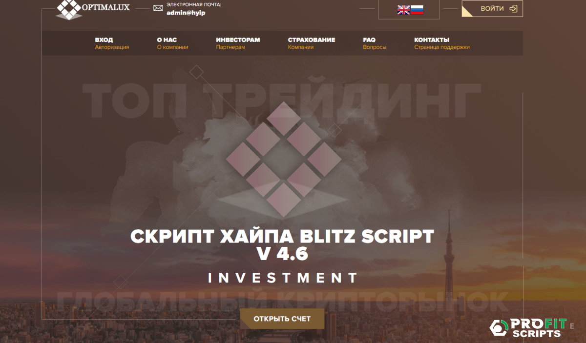 Скрипт хайпа на движке Blitz Script с уникальным дизайном Движок скрипта Blitz-Script 4.6 (Не требует официальной лицензии)