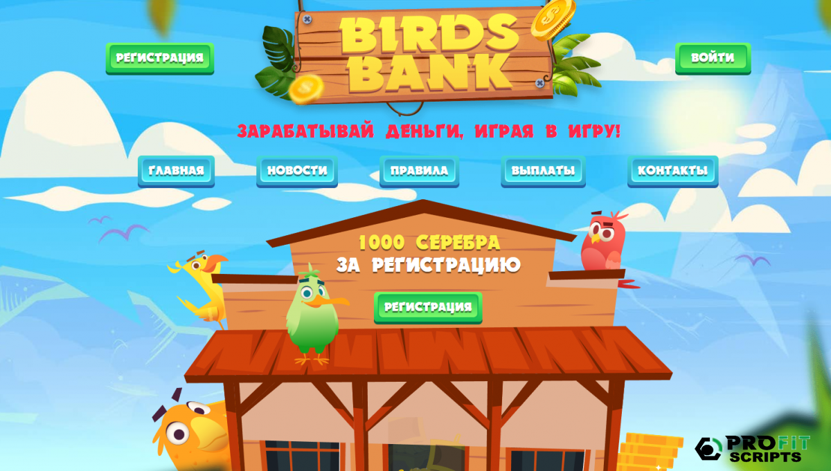 Скрипт уникальной экономической игры Birds Bank написанный новом модернизированным и безопасным движке фруктовой фермы,.